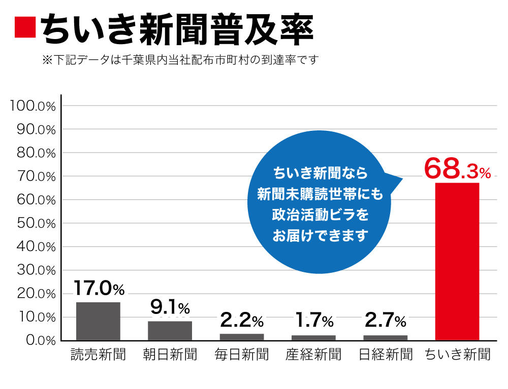 千葉県の一部に配布しているフリーペーパー「ちいき新聞」をポスティングしているエリアの配布カバー率です。