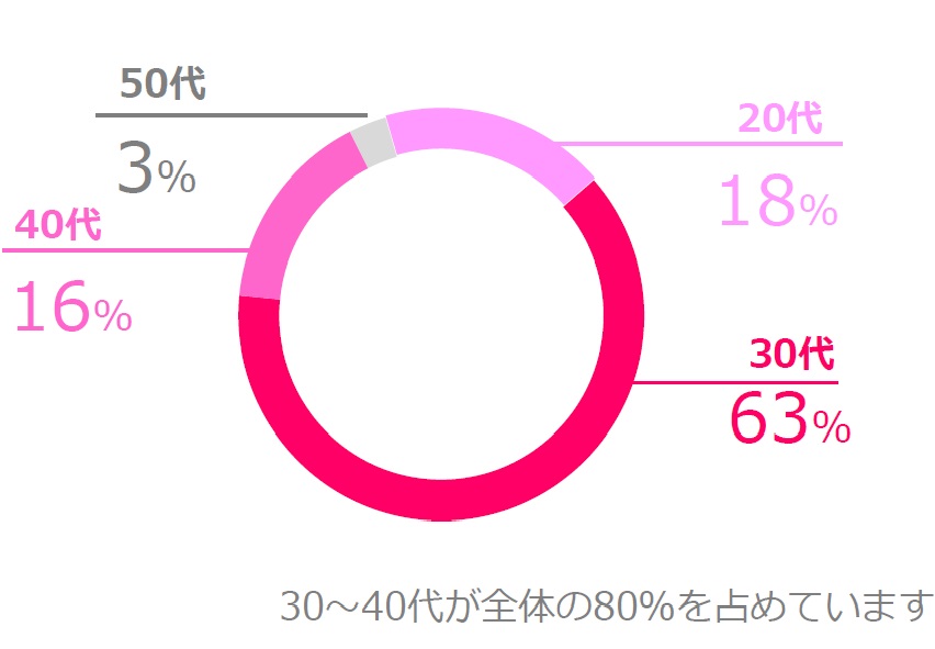 30代〜40代が全体の80%を占めています
