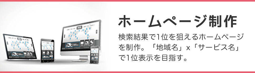 ホームページ制作 検索結果で1位を狙えるホームページを制作。「地域名」x「サービス名」で1位表示を目指す。